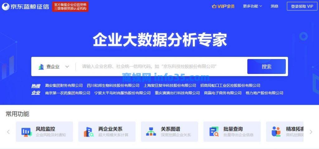 京东蓝鲸征信是京东集团旗下获得央行批准的企业征信服务的专业平台,跟爱企查、天眼查,企查查功能差不多。现在做活动送3年VIP会员。找工作、合作啥的,可以查一下,大家没事也可以查查自己的信息有没有被套用,变成法人之类的。